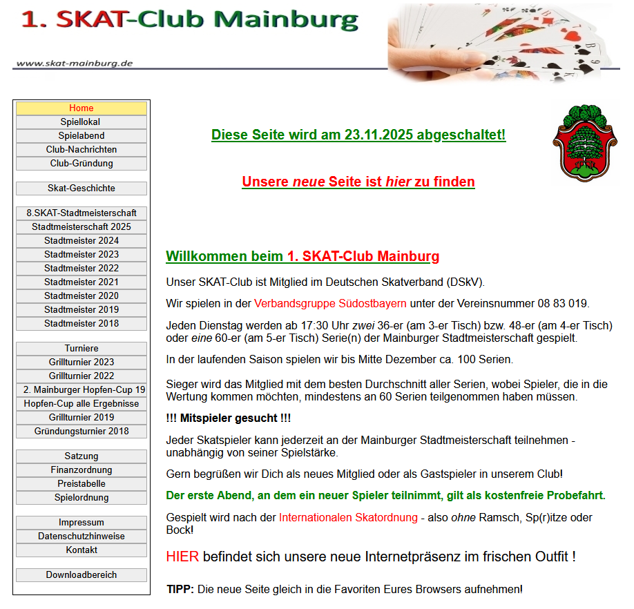 Das war unsere Website bis November 2025, die leider zum 23.11.2025 gekündigt wurde.